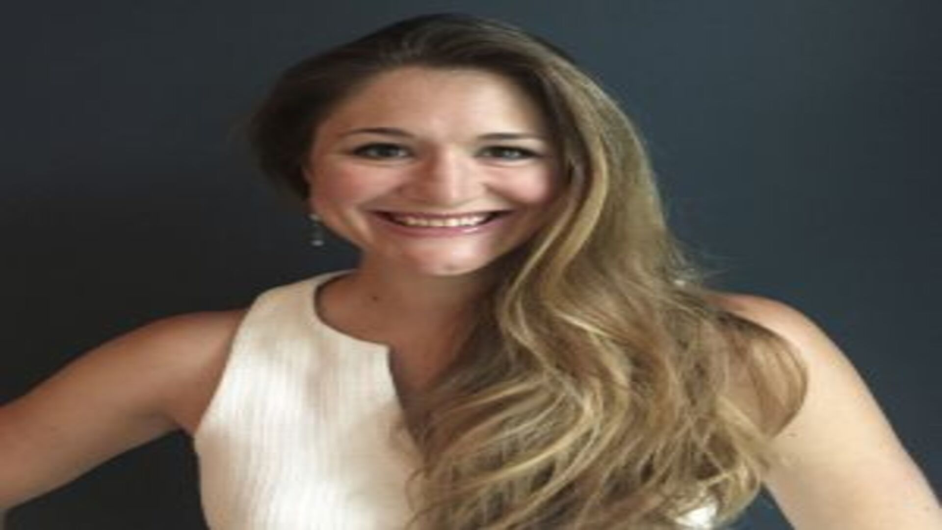An image collage containing 2 images, Image 1 shows Headshot of a smiling woman with long brown hair, wearing a white top, Image 2 shows A young man in a white polo shirt and sunglasses sits on a boat with the sea and distant land behind him